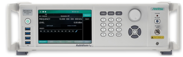 The series MG362x1A synthesized signal generators are microprocessor-based, synthesized signal sources with high resolution phase-lock capability. The MG362x1A is the "ideal microwave signal generator," offering frequency coverage from 9 kHz to 70 GHz and provides the lowest phase noise, leveled output power, spectral purity, switching speed, AM, FM, Phase and Pulse modulation performance, upgradability, reliability, and service. Accepts GNSS as well as accepts and provides 1600 MHz, 100 MHz, 10 MHz ±100 Hz, 0 to 10 dBm time-base signals. Our signal generators are configurable for a broad range of applications from R&D to manufacturing and depot repair. Anritsu provides a total solution including proven reliability and standard 3 year warranty plus pre-sale and post-sale support that is the best in the industry. All functions of the signal generator are fully controllable locally from the front panel or remotely (except for power on/standby) via Ethernet (raw sockets over TCP/IP) or GPIB (IEEE-488 interface bus).