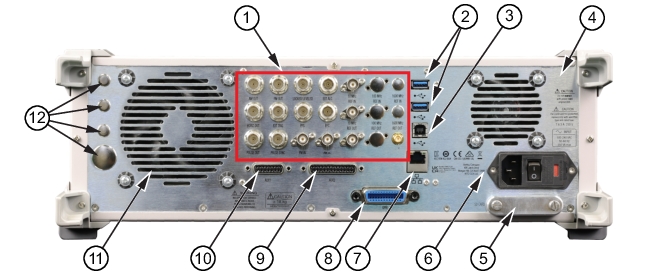 Accepts an external 100 MHz ± 200 Hz or 2 ppm 12 ± 1 dBm (20 dBm no-damage level) reference signal. Enabled with Option 3 or 13. Automatically disconnects the internal high-stability time-base option, if connected. (50 Ω impedance, SMA type, rear panel)