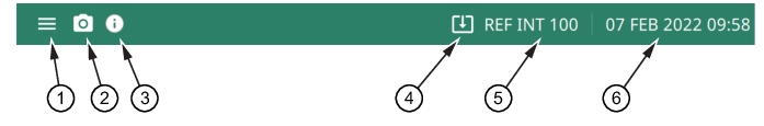 1. Press the 3-line icon to display the System Menu. The instrument model and its serial number are also displayed. 2. Press the camera icon to capture a screen shot of the current display. The image file is saved in PNG format with the following naming scheme: screenshot_yymmdd_hhmmss.png (year, month, day, hour, minute, second). Using the SCREENSHOT Settings, you can set the screen capture region, color theme, annotations, and destination directory. 3. Notifications are generated when an error is detected or an activity such as a screen shot has taken place. The number of unread notifications appears next to the icon. The notification area is where all dynamic notifications are presented. These notifications are generally information messages to the user and not hardware failure messages. Press the icon to display the Notifications list. 4. Displayed when a USB device is attached. To ensure the device or its data does not become corrupted, press this icon to eject the USB device before it is unplugged from the USB port. 5. Displays the active internal reference. 6. The right side of the instrument title bar displays the system date and time. Pressing this field opens the DATE TIME Settings. |
