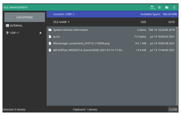 While in File Manager, you can preview screenshots on the instrument display simply by touching the screenshot file name. While the preview is displayed, you can use the controls to: