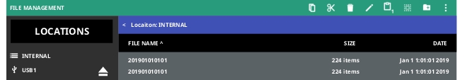 The file management toolbar appears when in the FILES menu and a file is selected.