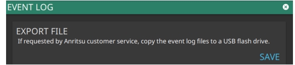 The EVENT LOG allows you to save the event log as a file. This log file is a binary file that may be used by customer service to open and view saved logs.