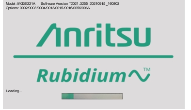 Figure: Startup Display Screen The display shows the model number, software version installed, and the options installed. The progress bar displays the system power up and loading sequence status.