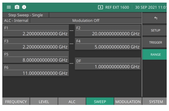 F1-F2 Frequency preset parameters. Sets as a pair when setting a sweep. F3-F4 Frequency preset parameters. Sets as a pair when setting a sweep. F5 dF Frequency preset parameters. This sweep preset includes dF and delta Frequency preset. F6-dF Frequency preset parameters. This sweep preset includes dF and delta Frequency preset. |