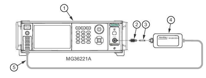 • USB Power Sensor MA24330A (10 MHz to 33 GHz). Use when calibrating a MG36221A.