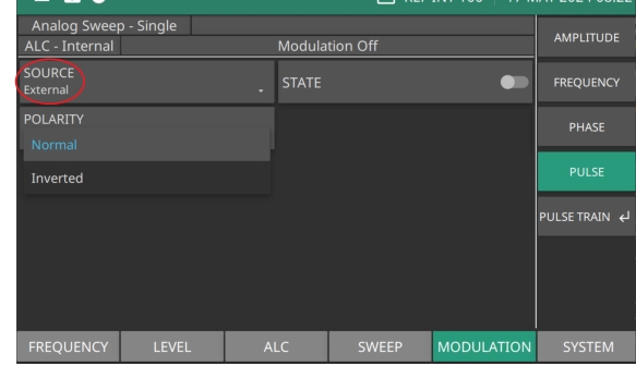 Press: MODULATION | PULSE | SOURCE | External