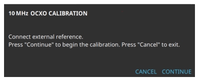 3. Press CONTINUE to start the calibration. The status bar will display Reference Calibration in Progress. When complete, the CALIBRATION DATE will update.