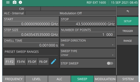 Step Sweep Setup Menu