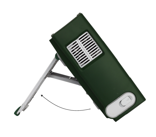 The attached tilt bail can be used for desktop operation. The tilt bail provides a backward tilt for improved stability and air flow. To deploy the tilt bail, pull the bottom of the tilt bail away from the back of the instrument. To store the tilt bail, push the bottom of the bail towards the back of the instrument and snap the bail into the clips on the back of the instrument.