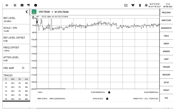 The MS2070A/80A Field Master is available with a built-in global positioning receiver feature (Option 31) that can provide latitude, longitude, altitude, and UTC timing information. This option also enhances frequency reference oscillator accuracy. When the global positioning receiver is actively locked to satellites, this information is saved with all saved measurements.