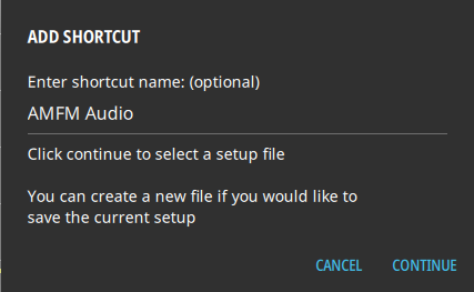 2. Select CREATE FROM FILE option to create a new shortcut from an already saved setup file.