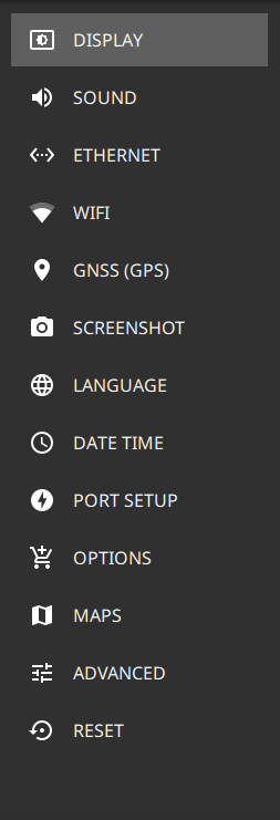 The system settings menu provides access to all instrument system-level settings such as network, GNSS (GPS), date and time, and display. The system settings menu provides access to all instrument system-level settings such as network, GPS/GNSS, date and time, and display.