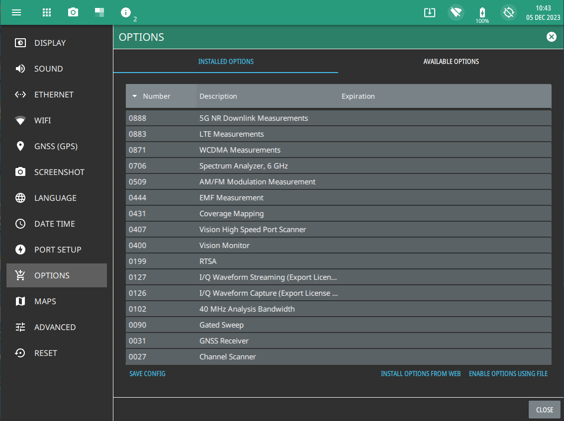 4. To upgrade your instrument with a specific option, press INSTALL OPTIONS FROM WEB to install options available on the web.