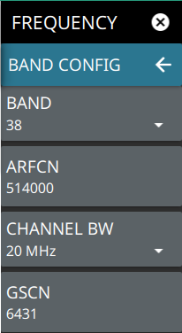 - ![]() | BAND Select MANUAL or one of the predefined bands. Selecting MANUAL disables ARFCN and GSCN settings. Selecting a predefined band activates ARFCN and GSCN settings. ARFCN ARFCN is the absolute radio frequency channel number. The ARFCN is a unique identification number assigned to each radio channel within a communications spectrum. The ARFCN can be used to calculate the center frequency of the radio channel. The available input range is dependent on the selected band. CHANNEL BW Sets the measurement channel bandwidth. The available bandwidth settings depend on the selected band and bandwidth option installed in the instrument. Refer to “Options Settings” section in Instrument Overview chapter of the user guide. GSCN GSCN is the global synchronization raster channel. The GSCN identifies the mapping/offset of the synchronous signal block (SSB). The available input range is dependent on the selected band. |