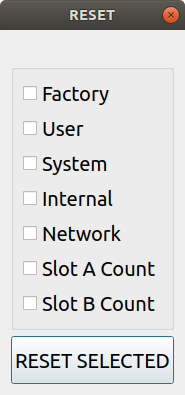 - ![]() | Factory Performs a Factory reset, which deletes last saved settings files for all applications. User Performs a User reset, which deletes all user setup, measurement, csv, limit, screenshot, IQ captures, and user calibration files. System Performs a Factory reset and also deletes event and error logs. Internal For service use only. Performs an Internal reset, which deletes non-volatile system files, except for critical files such as the serial number, options, and network configuration. Does not take effect until the next boot. Network Performs a Network reset, which deletes manual Ethernet settings and reverts the networking to DHCP. All saved Wireless networks will also be lost. Slot A Count Resets Slot A Count to 3. This is used for the recovery mode countdown. Slot B Count Resets Slot B Count to 3. This is used for the recovery mode countdown. RESET SELECTED Resets the MS2070A/80A by the method chosen. |