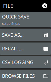 Setup: Saves the current instrument setup (stp file type).