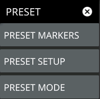- ![]() | PRESET MARKERS Presets all values on the MARKER menu to default values. Not available in LTE Demod Summary measurement. PRESET SETUP Presets all values on the SETUP menu to default values. PRESET MODE Presets all of the current analyzer settings to default values. |