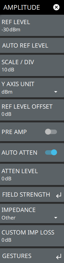2. To manually set the reference level, press AMPLITUDE > REF LEVEL, then enter the desired reference level.