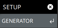 ![]() | GENERATOR Opens the GENERATOR Menu (Option 20). |