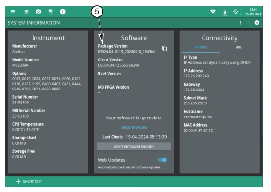 5. Verify if the Software Package Version displayed is the most current version installed.